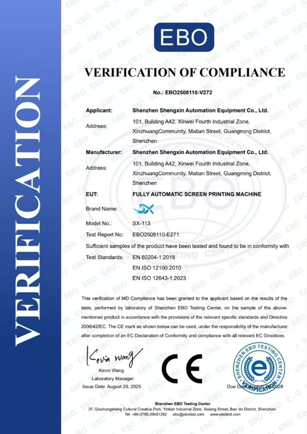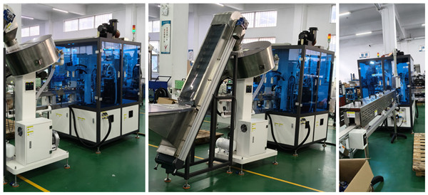 Fully automatic single color screen printer for top and side of lids, exported to Europe.